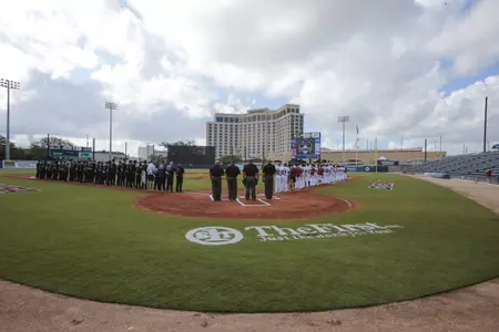 In fact, the Owls' win over FIU on Wednesday was the only game of four scheduled on the tournament's opening day to wrap up completely (despite over three hours of delays). Game two between Louisiana Tech and Rice, the winner of which will be FAU's next opponent, was delayed several times before being halted in the top of the seventh with Rice leading 6-1.
